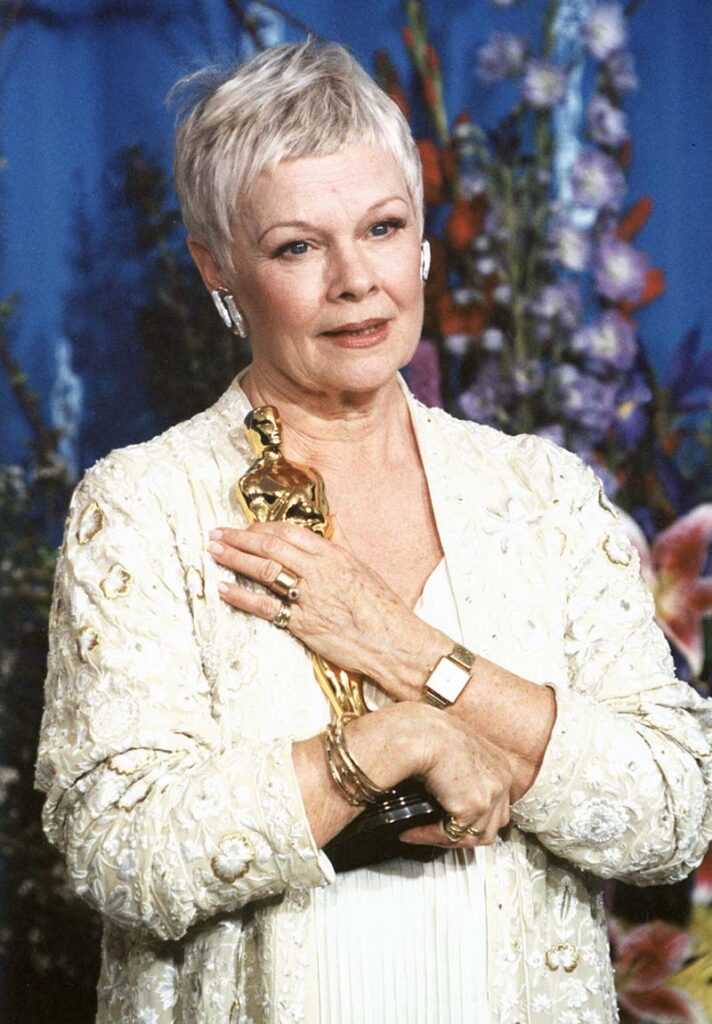 Dench ha sido nominada en ocho ocasiones al Óscar, y ganó en 1999 como mejor actriz de reparto por su memorable papel de la Reina Isabel I en ‘Shakespeare in Love’ (1998). En este filme, compartió pantalla con Gwyneth Paltrow, Joseph Fiennes y Geoffrey Rush, siendo su breve pero impactante intervención uno de los momentos más destacados de la película. Además, su carrera incluye títulos como ‘Chocolat’ (2000), junto a Juliette Binoche y Johnny Depp, y ‘Notes on a Scandal’ (2006), que protagonizó junto a Cate Blanchett.