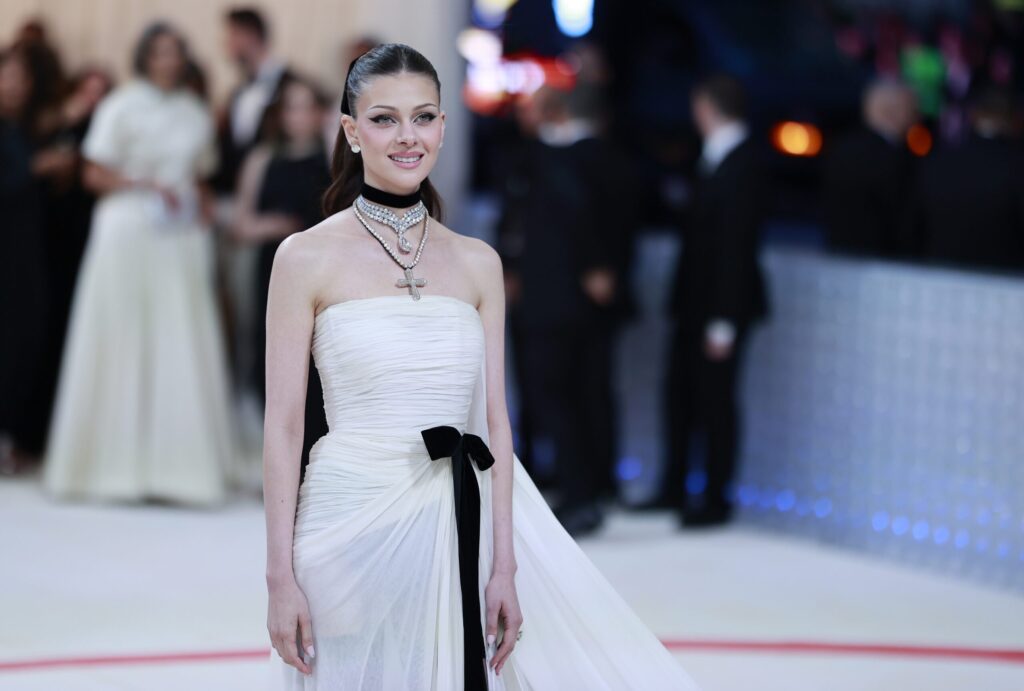 Esa inclinación por lo vintage la diferencia de otras figuras de su generación. Mientras muchas apuestan por tendencias inmediatas, Nicola opta por prendas con pasado. Su elección de Valentino para la boda de 2022 y las ediciones del Met Gala 2022 y 2023 refuerzan esa narrativa: firmas que transmiten un romanticismo estructurado.