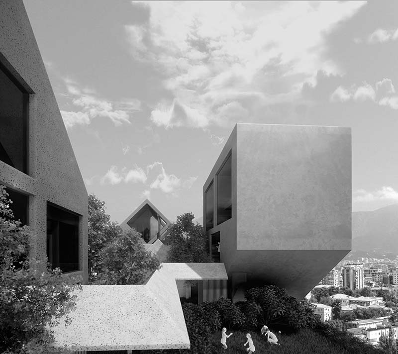 “La idea del proyecto era representar la transición de la vida en casas rurales a departamentos urbanos, simbolizando el rápido crecimiento de la ciudad. Puzzle Tirana se eleva verticalmente, formando un emblemático pueblo metropolitano”, según explica el arquitecto Lukas Rungger, fundador de NOA.